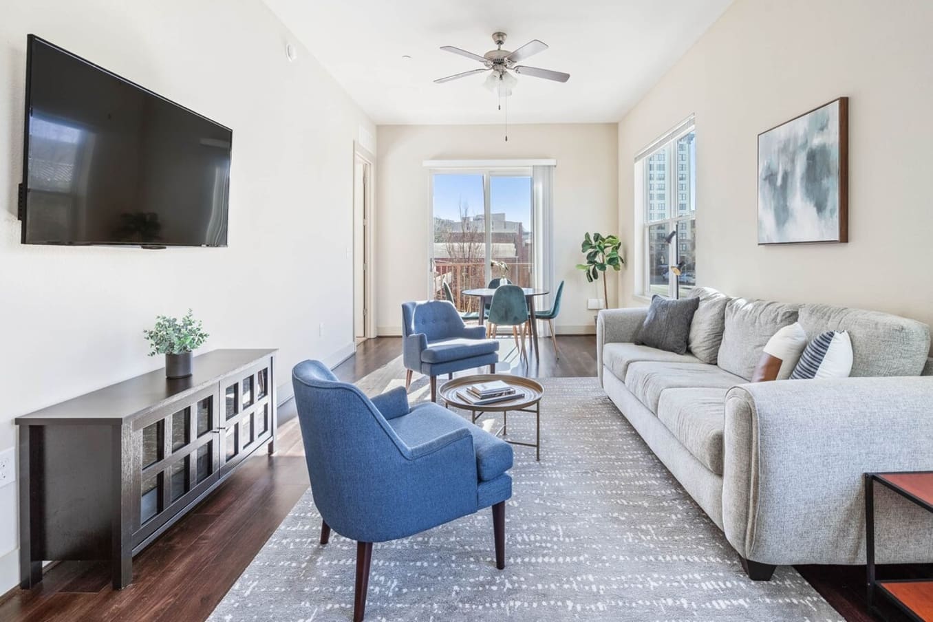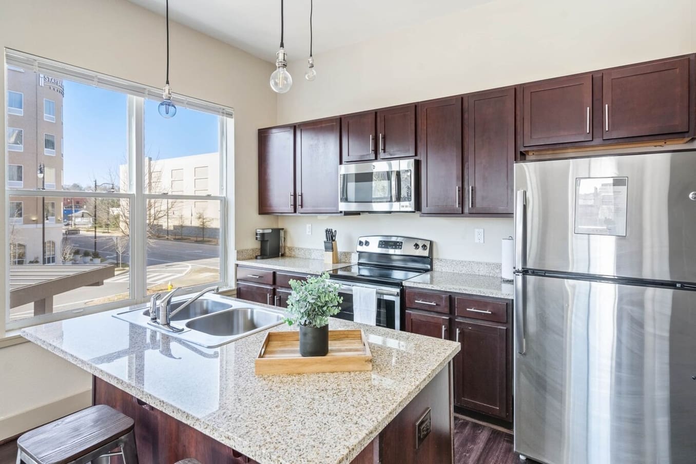 Discover the best of downtown Montgomery in a stylish 1-bedroom luxury apartment across from the Performing Arts Center and Renaissance Conference Center. Each unit features granite countertops, stainless steel appliances, smart TVs, and an open-air balcony with city views. Step outside to enjoy dining, music, and nightlife on Commerce Street, then return to the comfort of secure gated parking. Ideal for both business travelers and those seeking an upscale getaway.