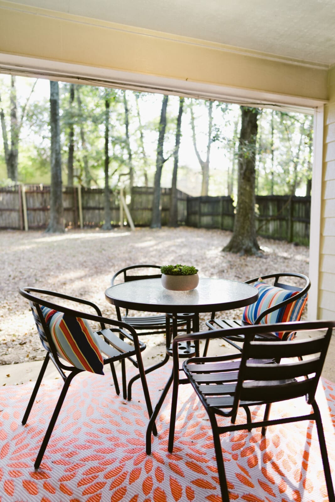Use the front or back yard or enjoy any space in the house. You may access any space inside the house other than the locked supply closet. This home has an electronic lock on the front door.