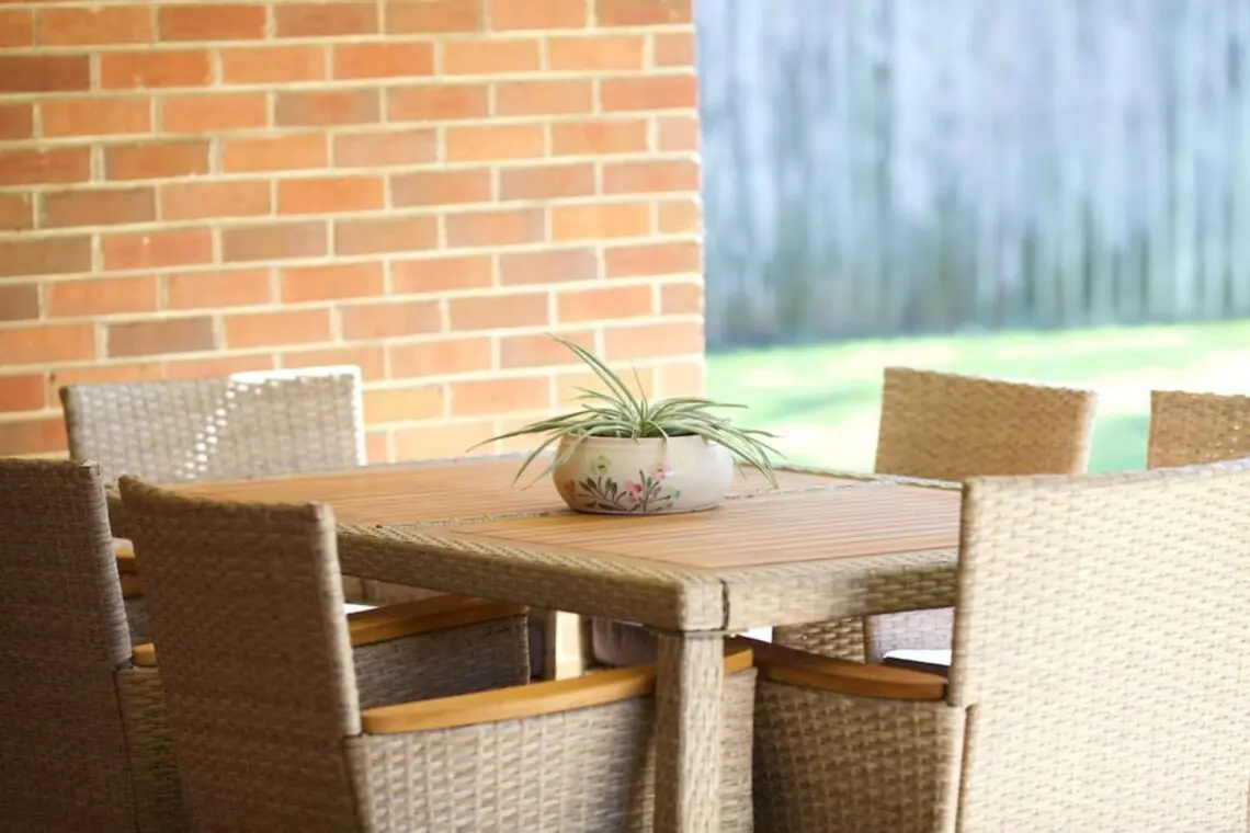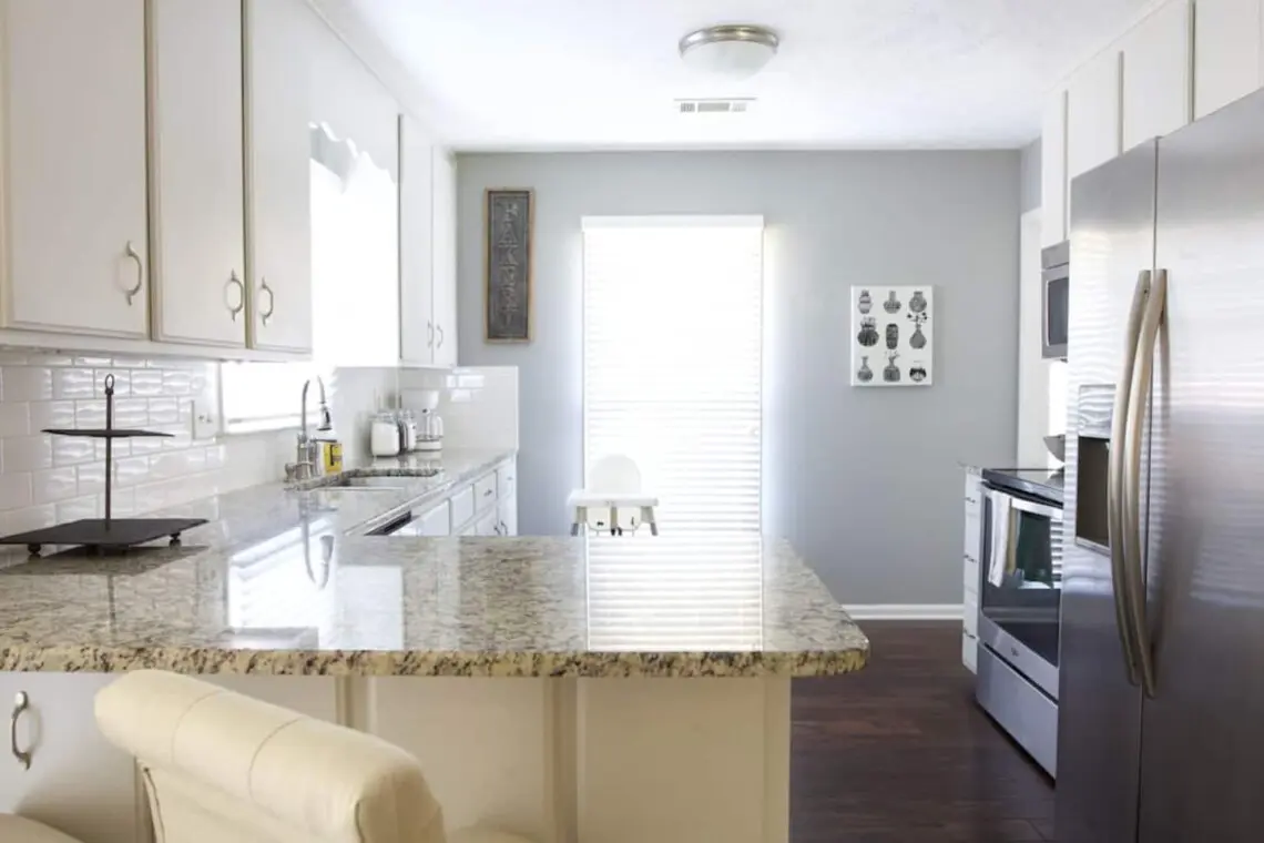 We’re big fans of the small details. We’ve made sure to include a work space, luxury bedding, some comfy seating areas, and outdoor space complete with a large dining table. Just past the foyer, you’ll enter the large living room space, full of natural light overlooking the beautiful backyard. To the right is a full kitchen, laundry room, dining area, and work space. To the left are the three bedrooms and two fully stocked bathrooms with an oversized Master suite. There are plenty of spaces to curl up with a good book, catch your favorite show, or get outdoors with the family!