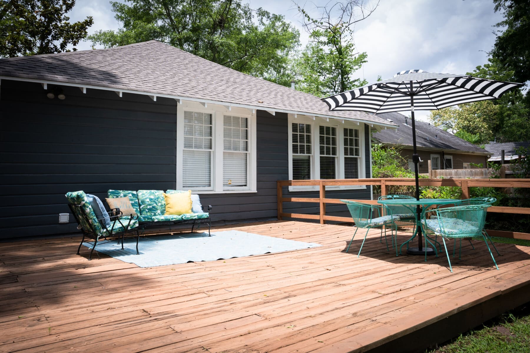 For added convenience, there’s a laundry room just off the kitchen, equipped with everything you need to keep your clothes fresh during your stay. As you make your way towards the back door, you’ll find that it opens up to a private fenced-in yard. This area is perfect for guests with pets, allowing them to roam freely while you relax and soak up the sunshine. We have outdoor furniture in the back as well for you to enjoy the sun.