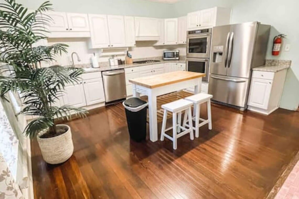 Like to cook? Use the deluxe double oven and gas stove top to cook up a great breakfast, lunch, or dinner and enjoy whether eating in the kitchen, or the dining room that opens up to a beautiful front porch. Book your stay with us today!