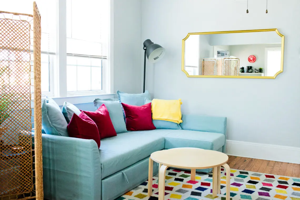 The living room is furnished for comfort, offering a smart TV for streaming your favorite shows and an air mattress for additional guests. Whether relaxing after a day exploring Pensacola or catching up on work, this space is designed to suit your needs.
