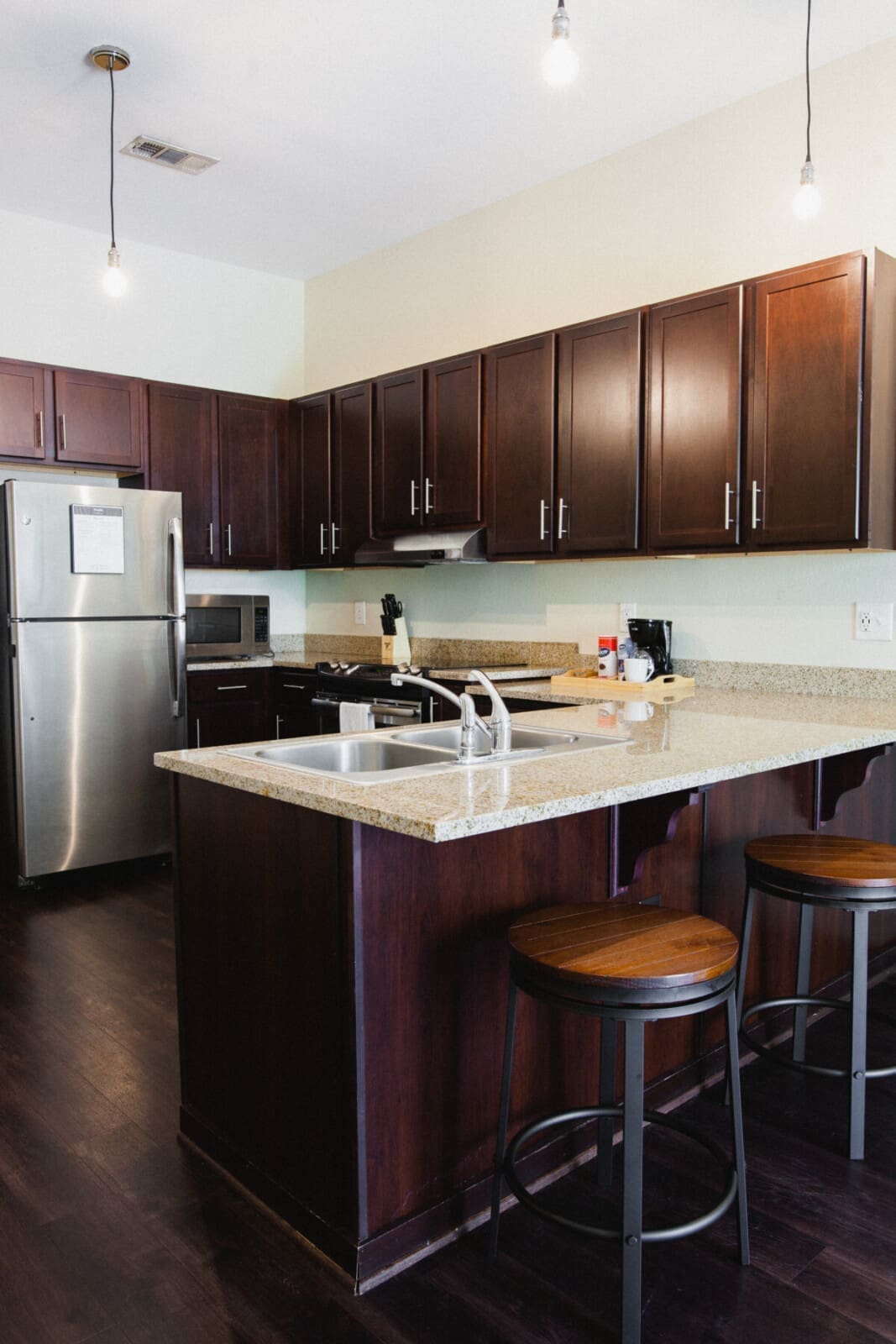 Upon arrival, you’ll be greeted by a stylish lobby that sets the tone for your stay. After parking your vehicle securely in the garage below. With the convenience of a smartlock code, you’ll enter your apartment, setting the stage for a seamless and enjoyable experience.