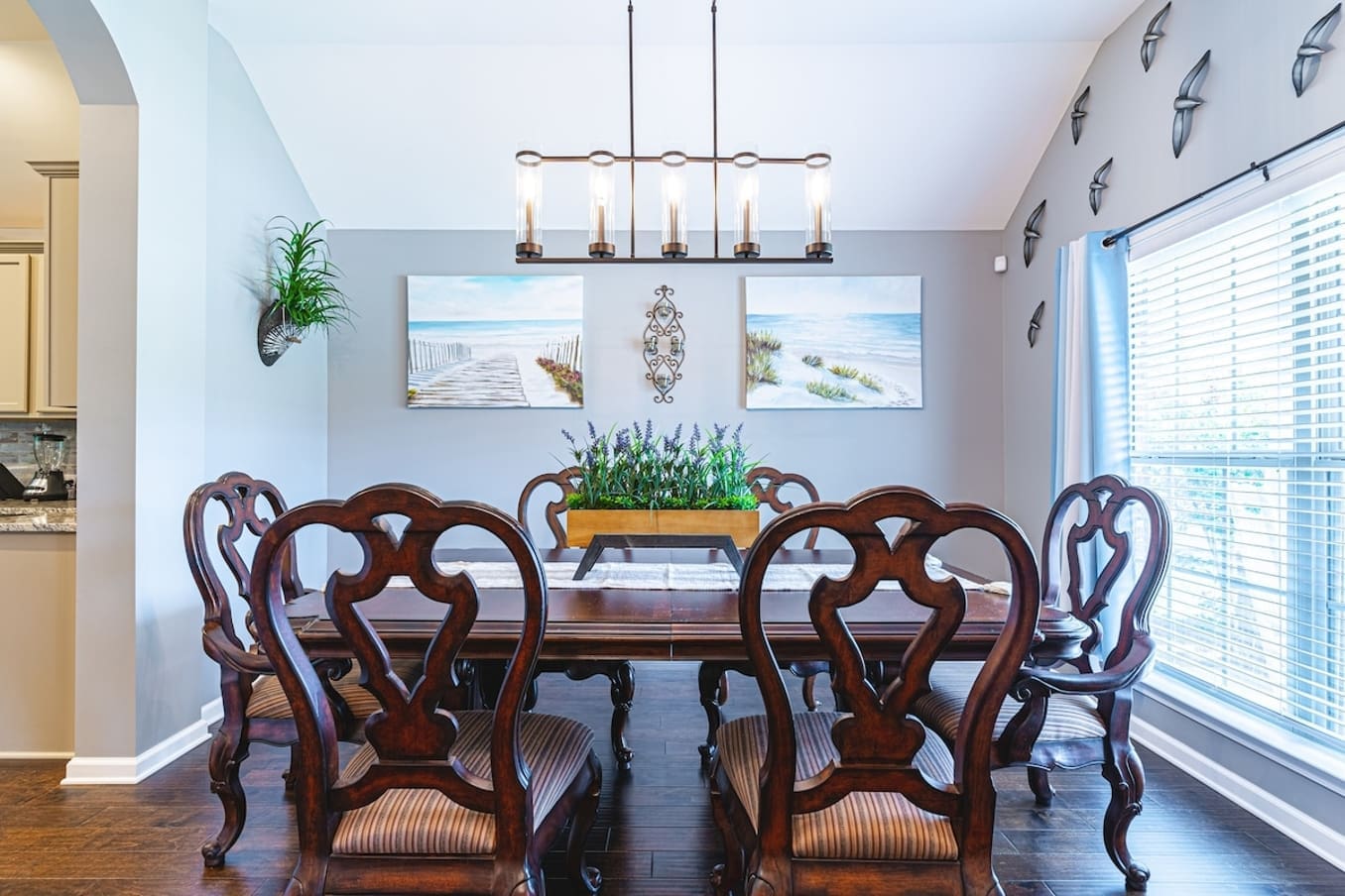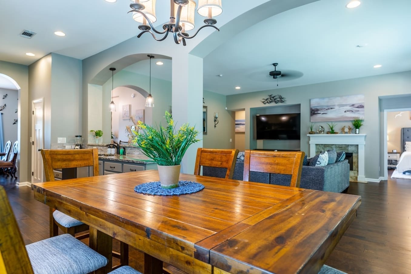 Experience comfort and convenience in this welcoming home located in a peaceful and family-friendly neighborhood. The space features modern finishes, brand-new appliances, and cozy king-sized beds for restful nights. Enjoy entertainment on large smart TVs with fast Wi-Fi, perfect for streaming or work. Step outside to relax on the spacious back patio, take calming strolls around the nearby lake, or let little ones enjoy the playground. Book now and make this space your home away from home.