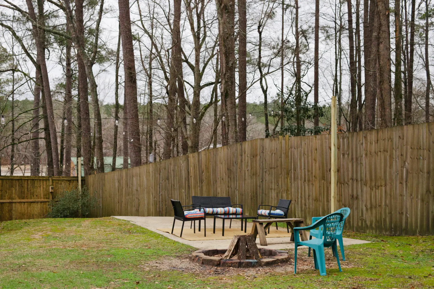 Step outside to our fenced backyard, where a cozy fire pit and ample seating await. Gather around the fire under the starry sky or unwind with a morning coffee amidst the tranquil surroundings.