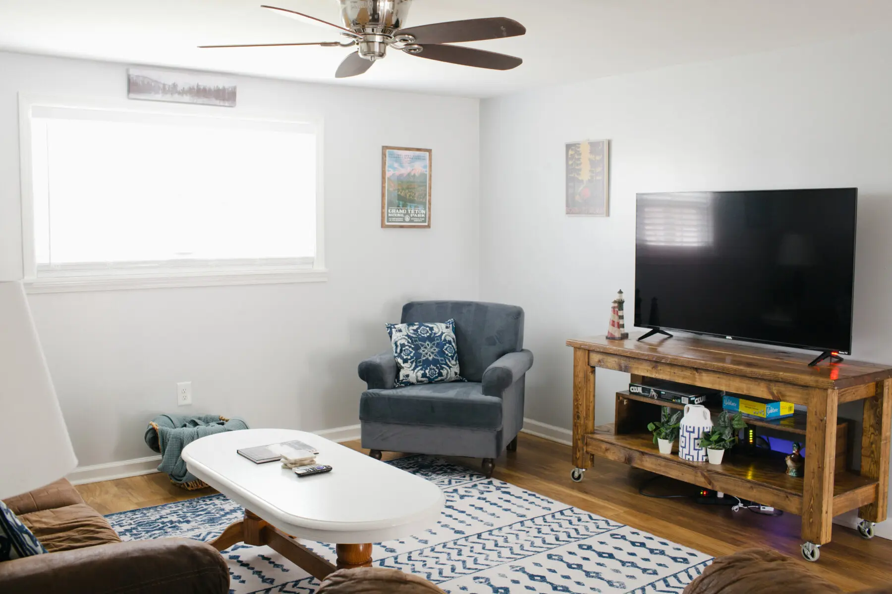 Relax in the cozy living room, furnished with plush seating and a new smart TV for your entertainment needs. With fast WiFi throughout the home, staying connected has never been easier.
