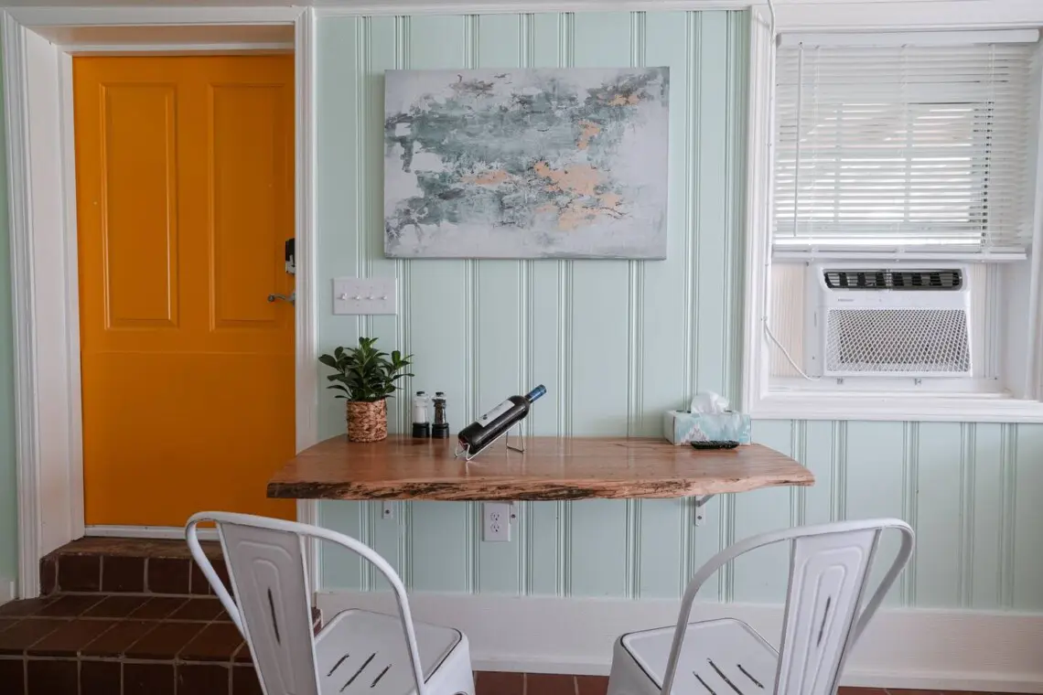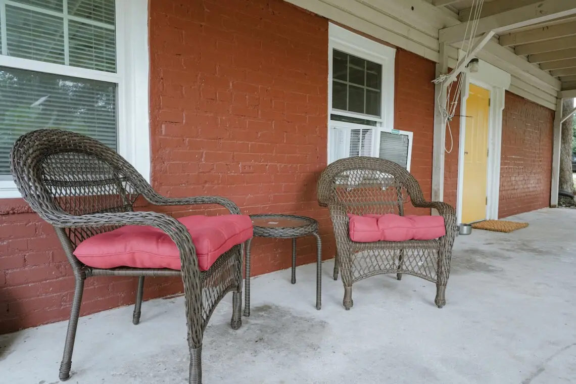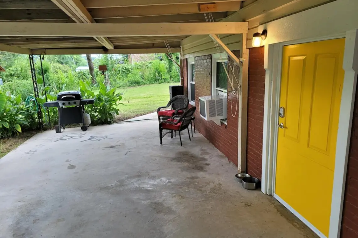 Enjoy the private patio space with a farmhouse theme inside and upgraded memory foam mattresses. We’ve got a king bed for your comfort and a 50″ smart TV to relax with. Our guests enjoy their own workspace as well as custom cut live-edge dining table made from Long-Leaf Woodshop right here in Wetumpka. We’re big fans of the small details and we’ve tried to include everything to make your stay more pleasant.