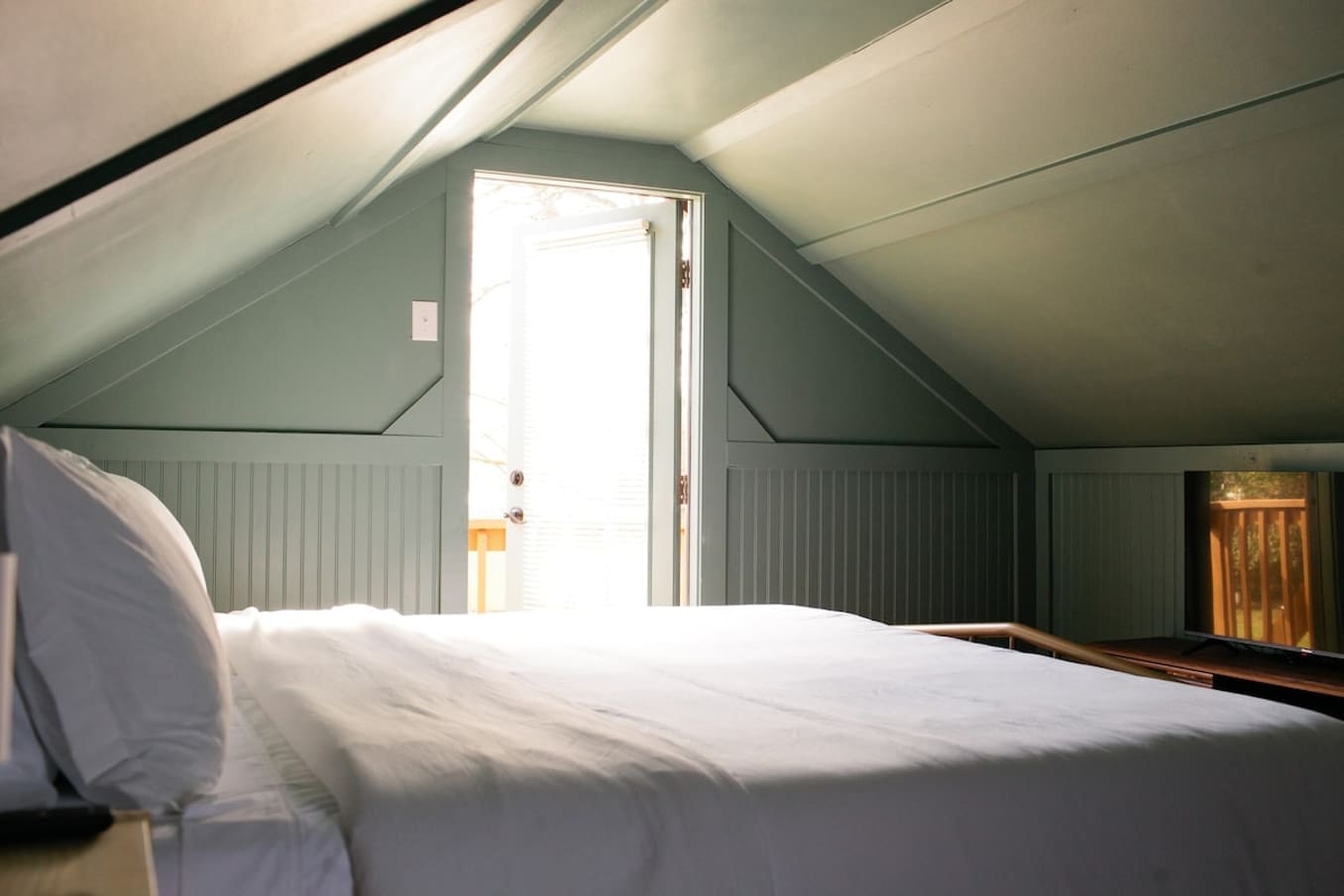 The cabin, on the other hand, provides a unique experience for six guests. With a king bed upstairs accessed via a spiral staircase, as well as a private balcony, this cozy space is perfect for a couple or a small family. The cabin also includes a full kitchen, ensuring your comfort and convenience during your stay.