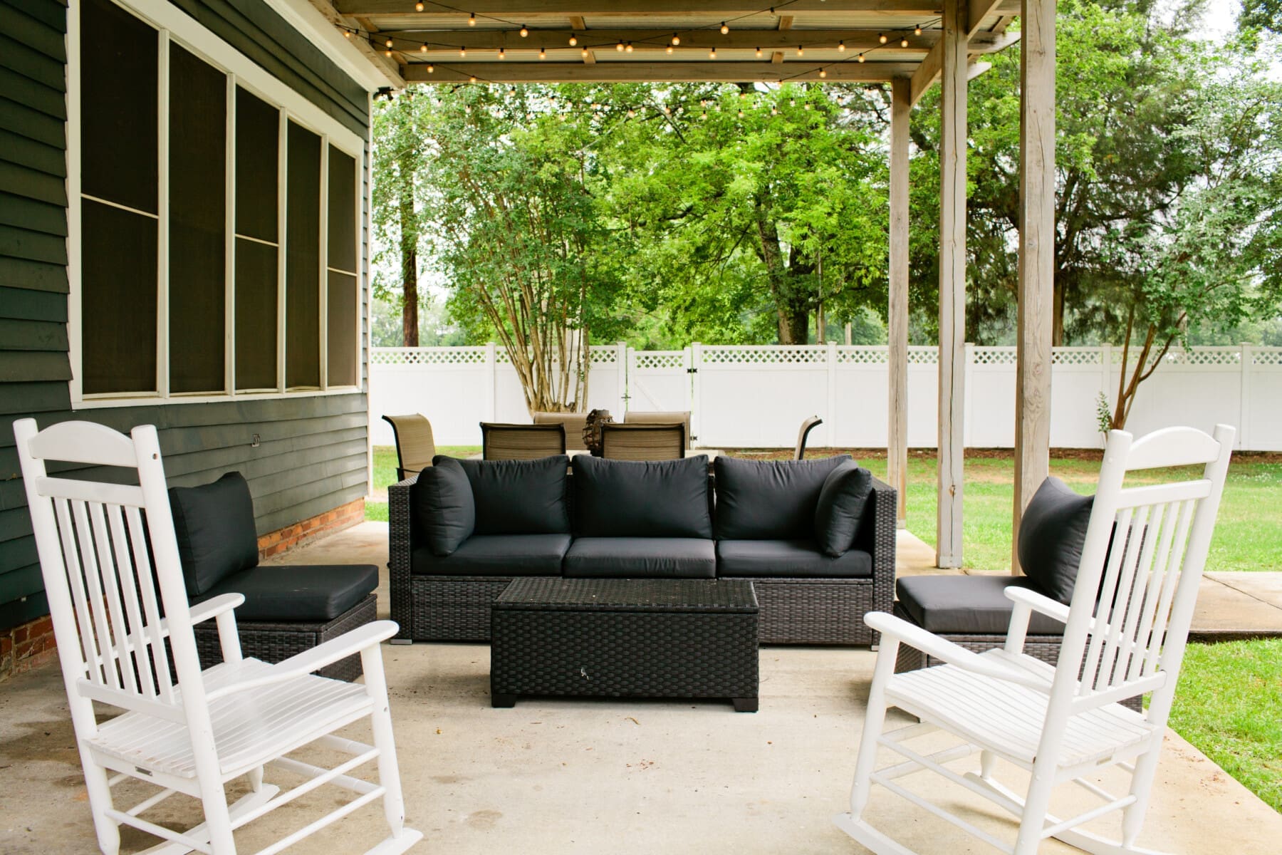The main house, boasting over 3500 sq ft, provides ample space for everyone to spread out comfortably. With 5 beautifully appointed bedrooms, there’s plenty of room for everyone to find their own private oasis. Each bedroom is equipped with a Smart TV, allowing you to unwind with your favorite shows or movies after a long day of exploring.