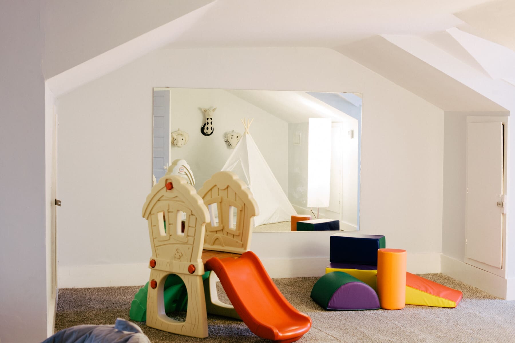 The kitchen and bathrooms in the main house feature luxurious granite counters and stainless steel appliances, blending modern convenience with historic charm. Prepare delicious meals for your group in the well-equipped kitchen, and gather around the large dining room table that can comfortably seat 12 guests. The main house also includes a kids’ playroom, ensuring the little ones are entertained and having a blast.