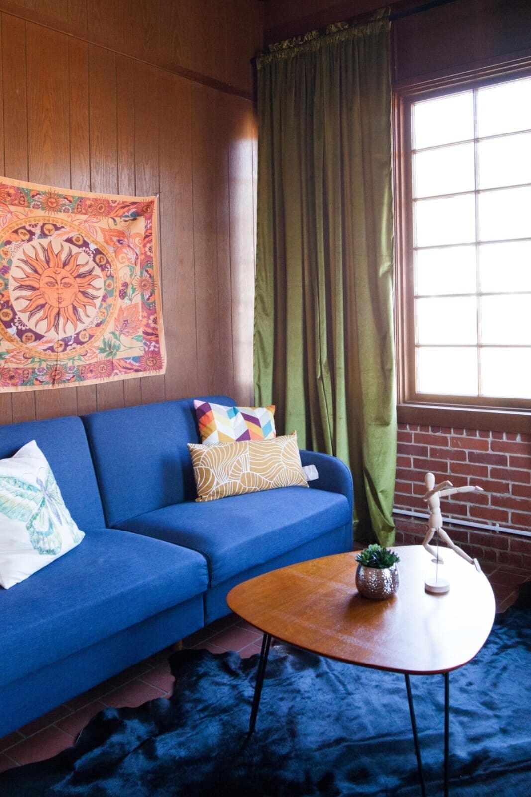 This home is decorated in a modern eclectic feel with thick velvet curtains and plush couches. We’ve got plenty of room for a number of guests in these huge bedrooms. We went with stainless appliances and preserved the original countertops in the kitchen. The home is equipped with an office with a convertible futon for those late nights. The backyard is fully fenced allowing for plenty of space for your pets and children to enjoy.