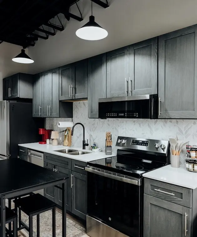 -Stainless steel appliances and granite countertops