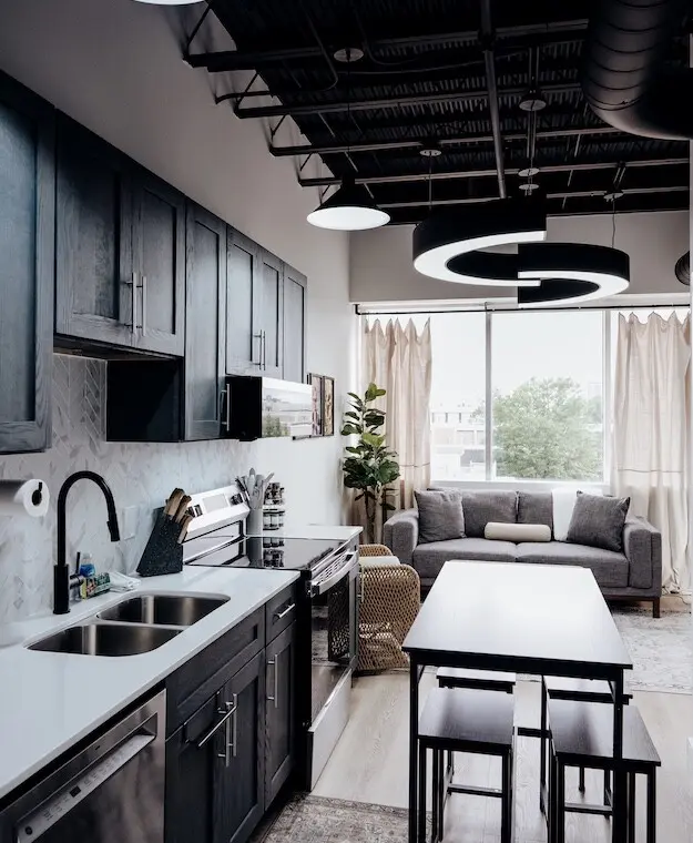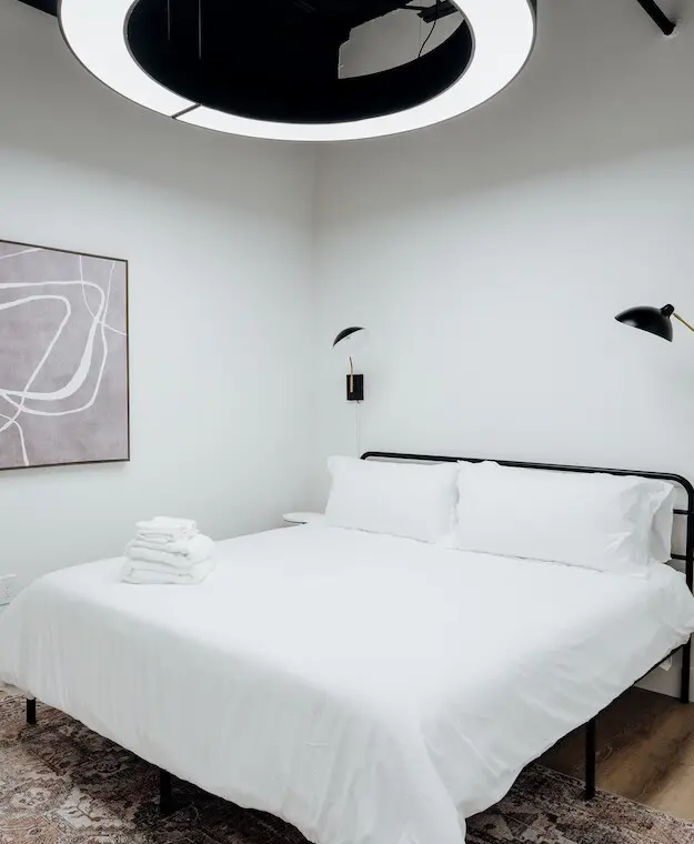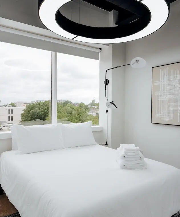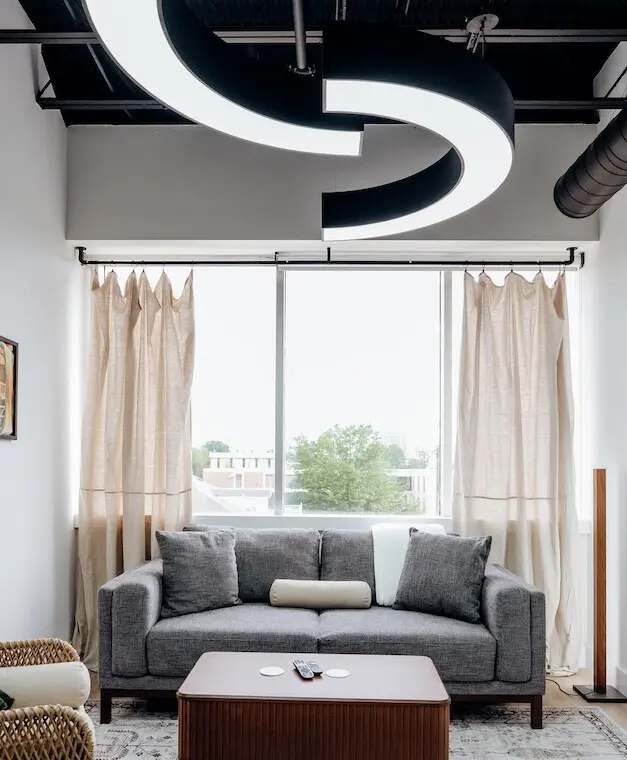 Step into comfort and style as you arrive at this beautifully designed downtown Montgomery apartment. Upon entering the front door, the elevator is conveniently located to your left. Ride up and step into a bright, thoughtfully curated space, where professional interior design and modern luxury set the tone for your stay.